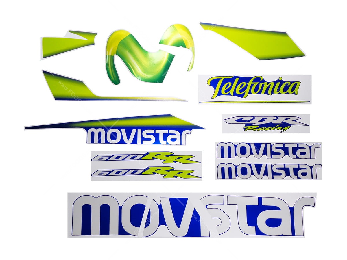Un juego de pegatinas para la moto Honda CBR 600 RR 2006 Movistar azul PB215