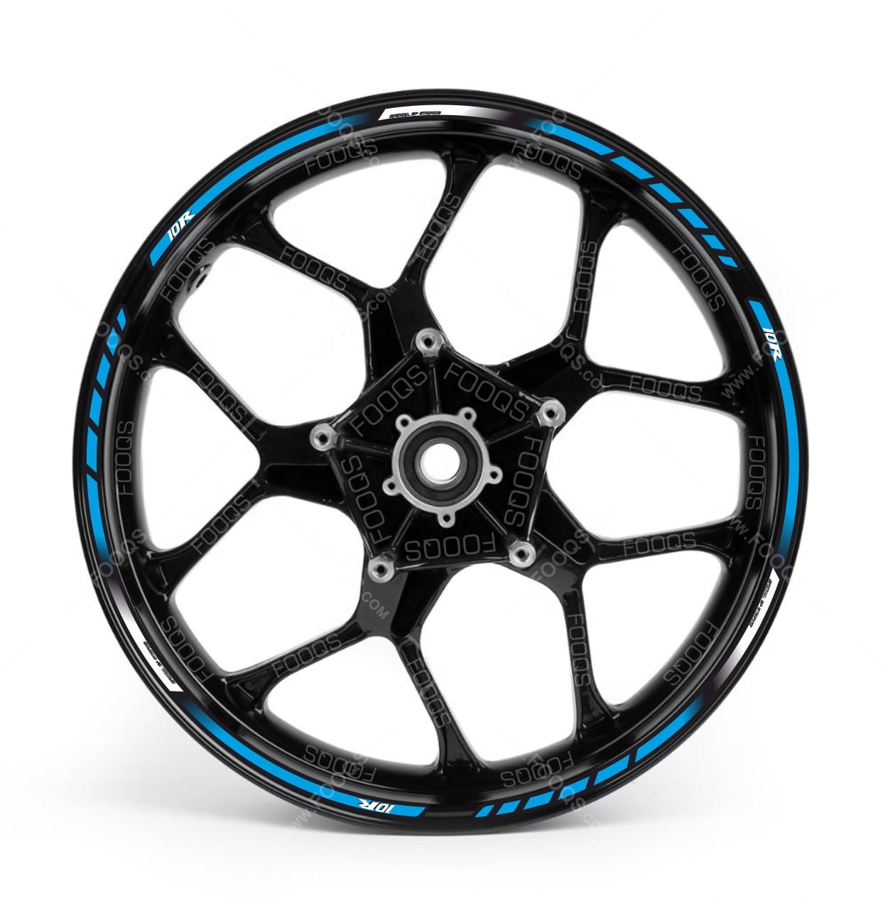 Un ensemble complet d'autocollants pour deux jantes de moto - roue avant et roue arrière.
