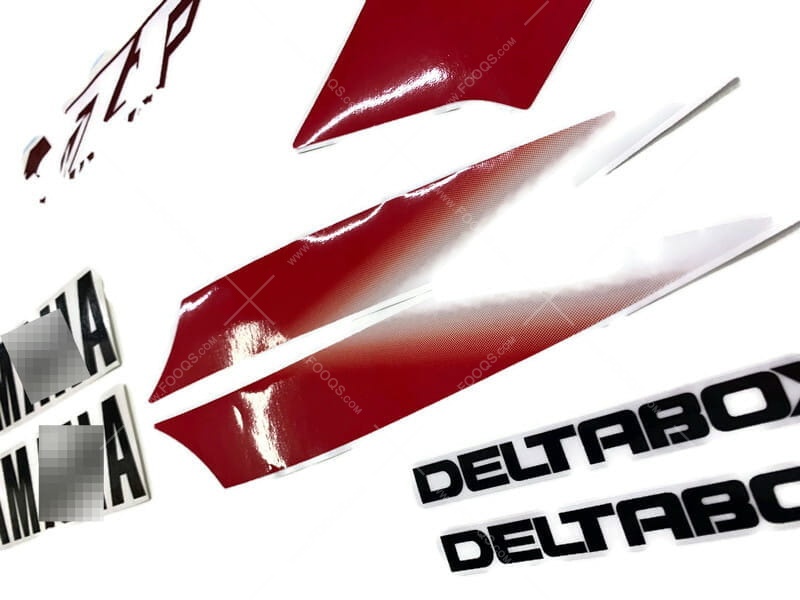 - Les autocollants d'informations pour le réservoir sont appliqués sur un vernis transparent - ils n'ont pas de laminé. Nous pouvons également les laminés sur demande.