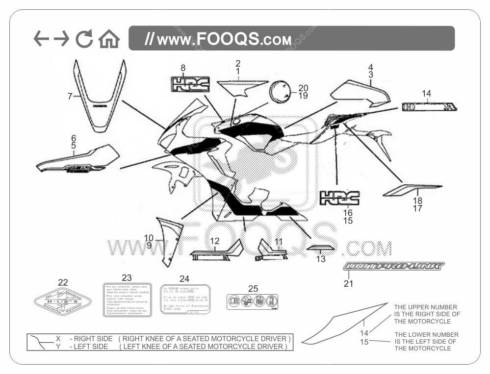 Honda CBR 1000 RR Fireblade SP2 2018 - 2019 rosso R380X adesivi