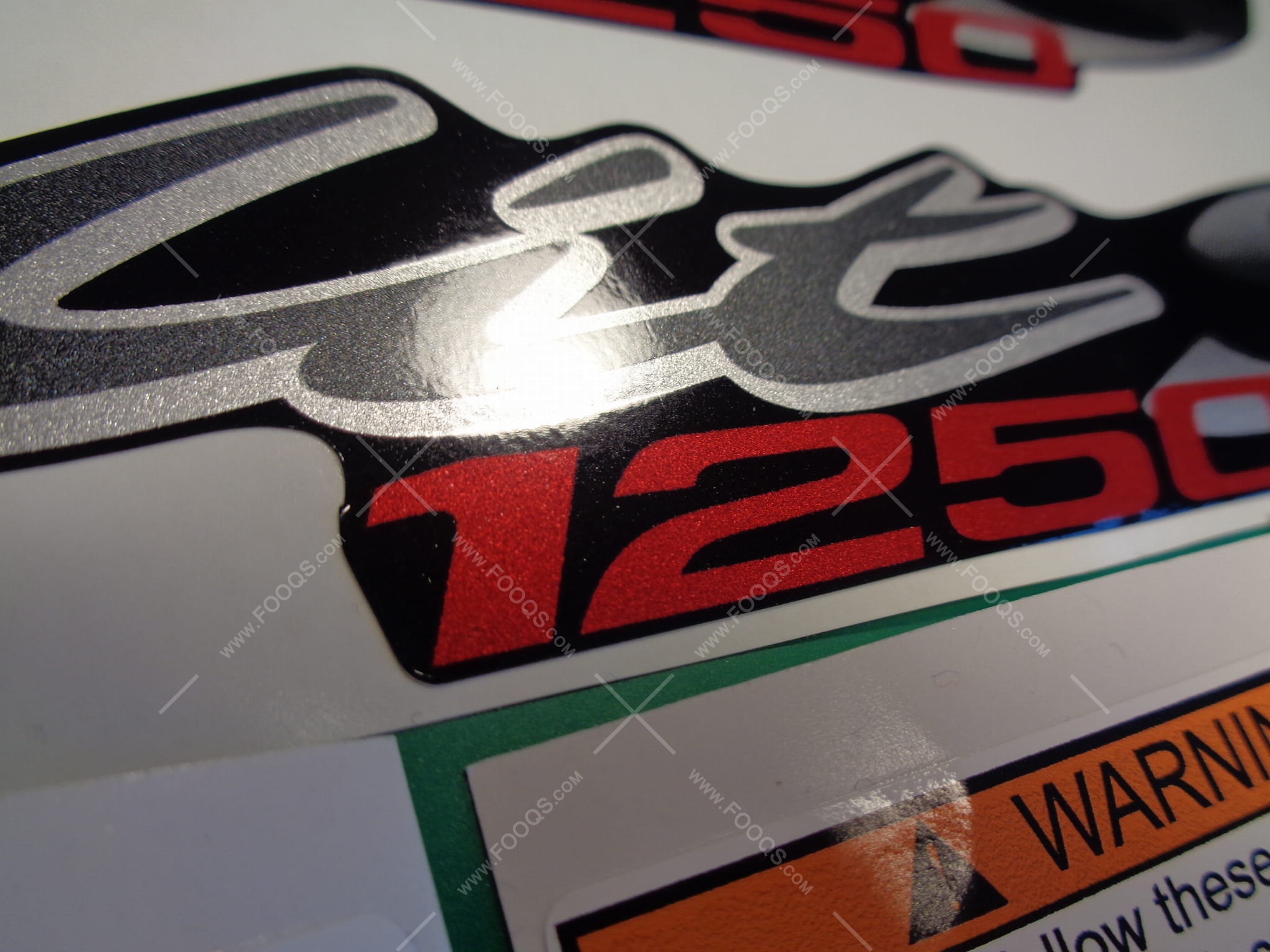 * adesivi informativi sul serbatoio applicati su una vernice trasparente – senza laminato. Su richiesta, possiamo anche laminare questi adesivi.Non trovi adesivi per la tua moto?