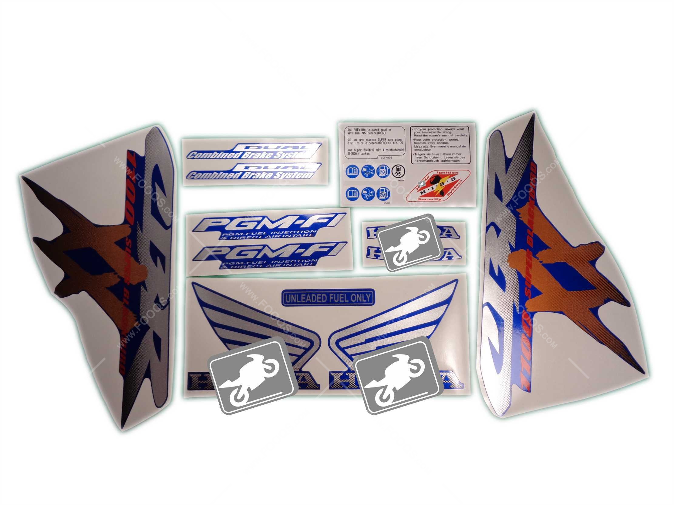 Aufkleberset für Honda CBR 1100 xx Blackbird 2002-2004 blau