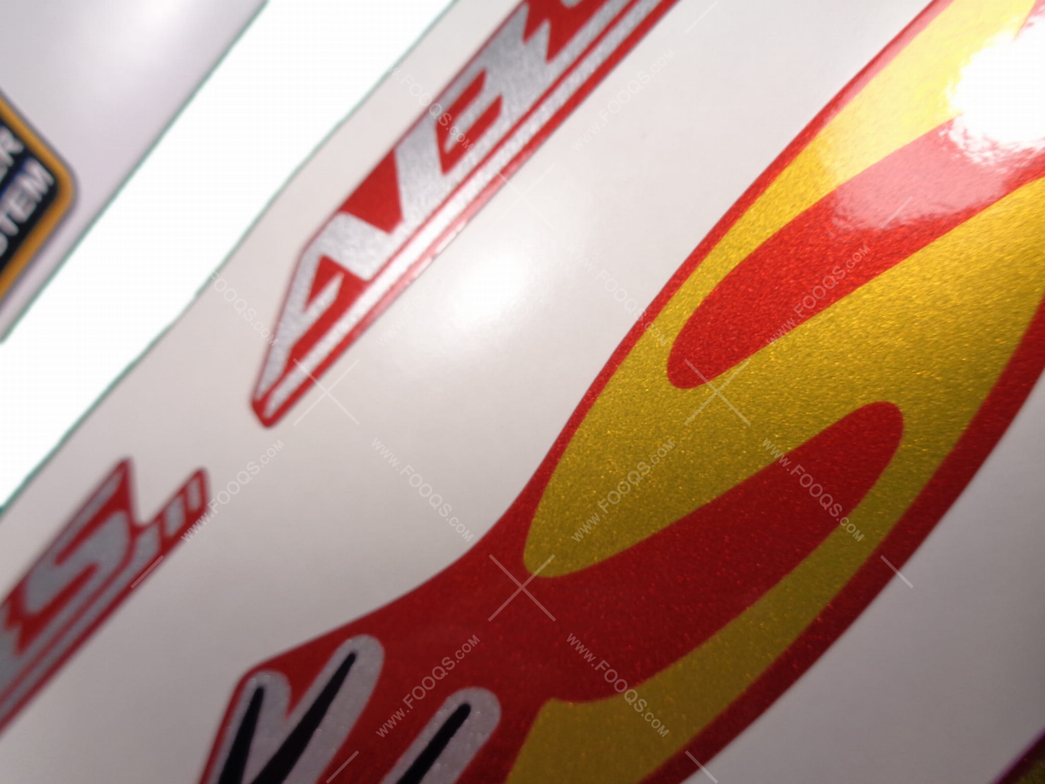 Gedruckte Aufkleber, hergestellt im Siebdruckverfahren – wie die originalen OEM-Aufkleber.